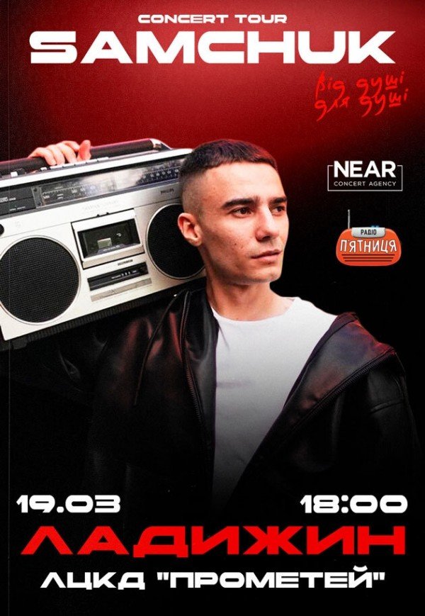 Samchuk відбудеться 19 березня 2026, 18:00, четвер в Центр культури та дозвілля "Прометей". За допомогою сервісу internet-bilet.ua, Ви зможете з легкістю забронювати, замовити та купити квитки на концерт, спектакль, оперу, балет, майстер-класи, спортивні та дитячі заходи, що Вас цікавлять, оплативши їх найбільш зручним для Вас способом: через інтернет банківською карткою VISA/MasterCard, готівкою або кур'єром, якщо зробите замовлення квитка з доставкою.